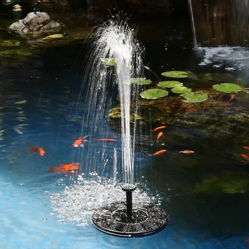 Solar Fountain Pump floats on the water and has no electric outlet or external battery. This product is suitable for bird bath, fish tank, small pond, garden decoration, water circulation for oxygen, etc.