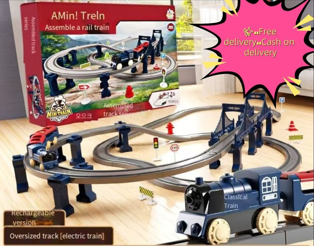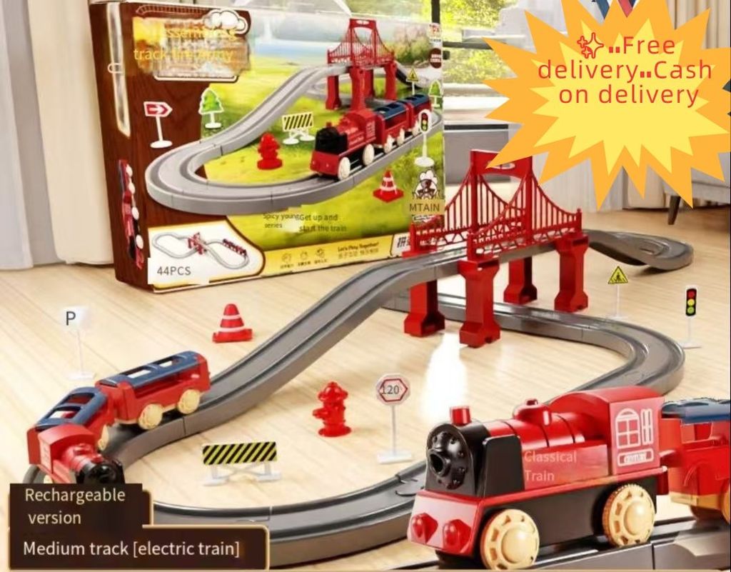 This electric track train set includes a detailed locomotive and several carriages, all made with high-quality materials to ensure long-lasting use. The track is easy to assemble and can be configured in different ways to create various play scenarios. It's a great way to stimulate children's creativity and imagination.
