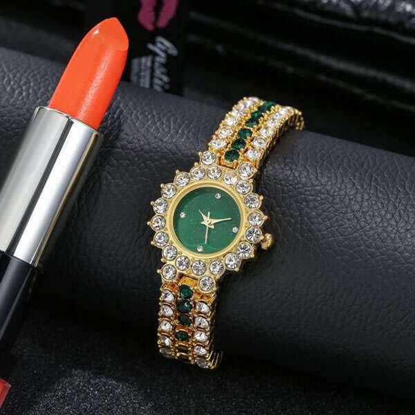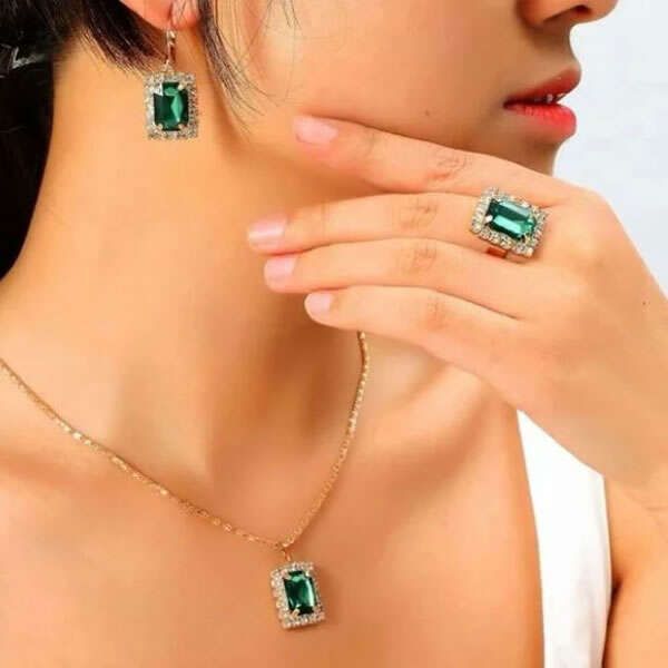 All the pieces in the jewelry set are decorated with zircons and stone in green color. Intricate and delicate decorations add a touch of luxury to every piece.