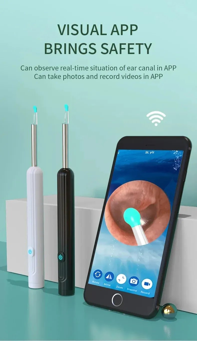 The wireless otoscope is IP67 waterproof, dustproof and anti-fog, easy to clean, and can examine teeth, nasal cavity, throat, hair roots and other body parts. Intelligent temperature control ensures that the ear cleaner gently touches the ear canal without irritating it.
