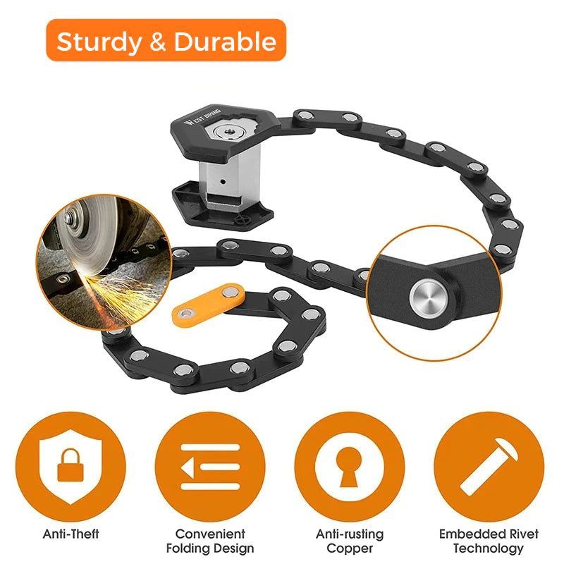 Foldable Bike Lock with Keys - Anti-Theft Alloy U-Lock and Chain