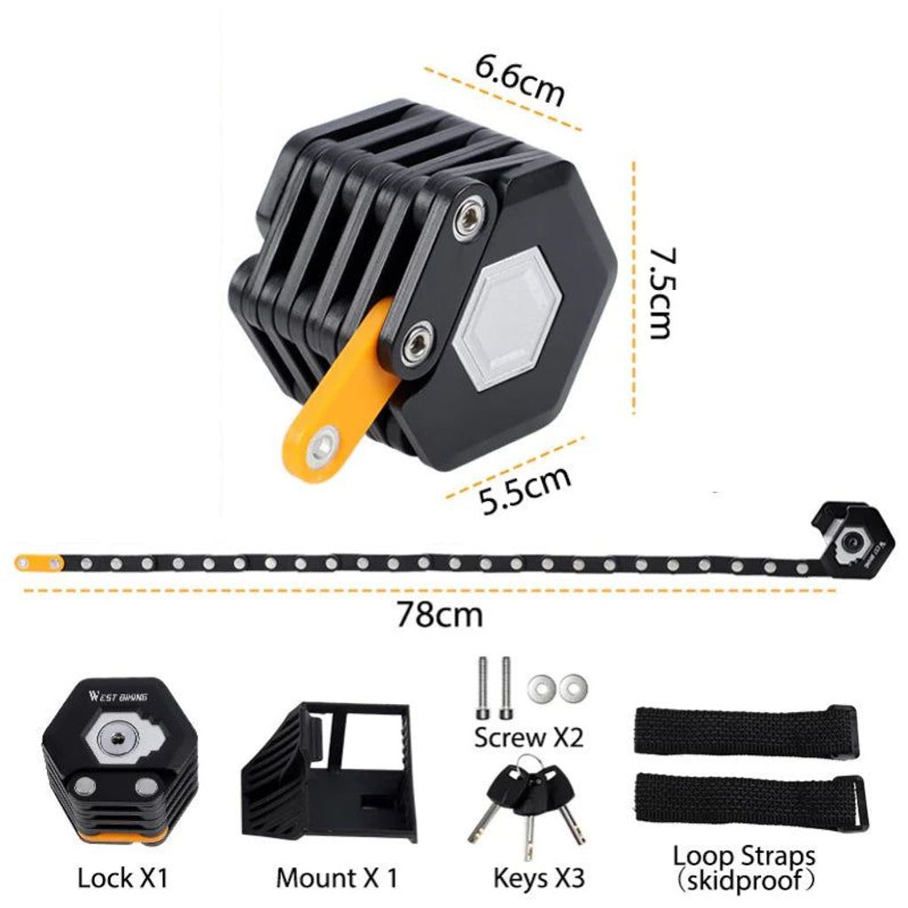 The Foldable Bike Lock is extremely easy to use and comes with a special key designed just for this. Simply insert the key and turn anti-clockwise to unlock, stretch out the Foldable Bike Lock to your desired length, latch onto your bike's tire, and turnkey again to lock.